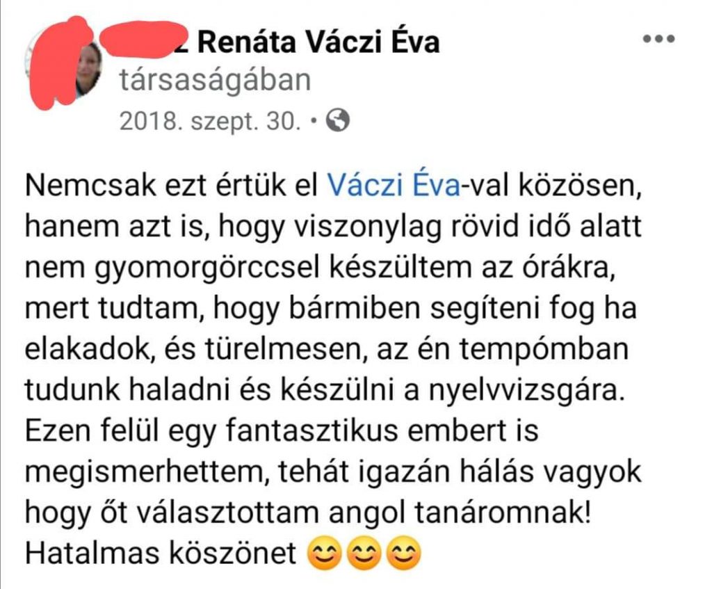 Most kezdtem kb. 3 hónapja a skype-os angoltanulást és nagyon örülök, hogy Évit választottam. Nagyon sokat tanultam már ilyen kevés idő alatt is.
