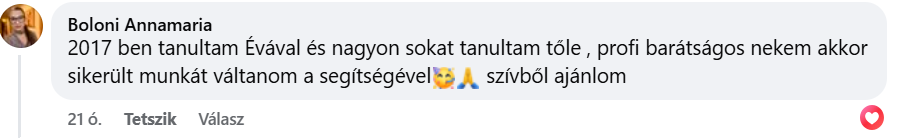 Három hónapja kezdtem el a tanfolyamot és már sokat tanultam Tőle.